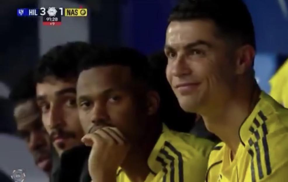 A reação de Cristiano Ronaldo após segundo gol de pênalti do Al Hilal…